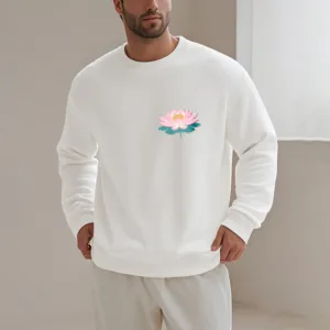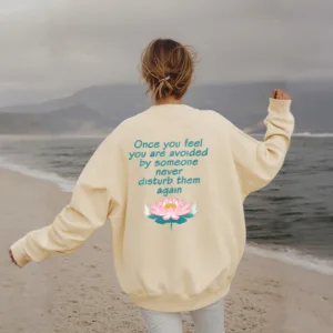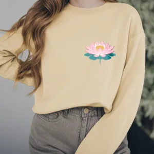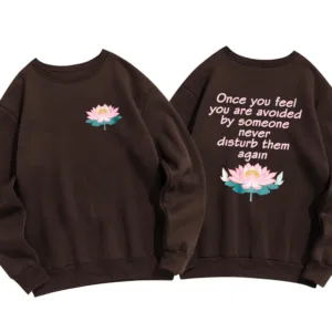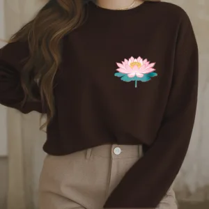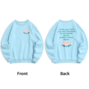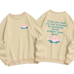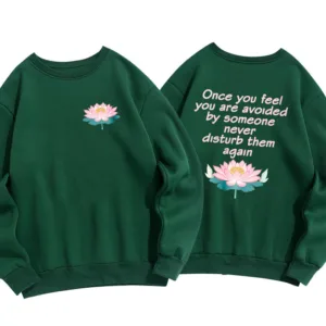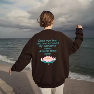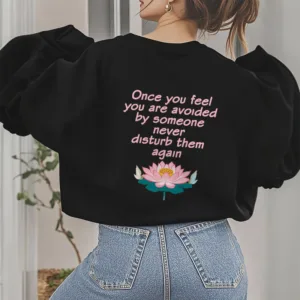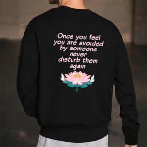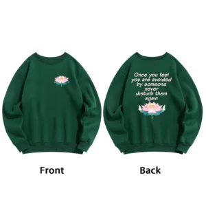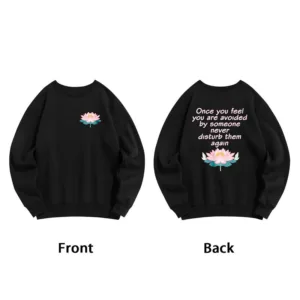 Lotus Avoided Fleece Lined Polyester Sweatshirt features a symbolic lotus on the chest and an inspirational message on the back. framed with a lotus design below. Made from soft. fleece-lined polyester. this sweatshirt provides warmth and comfort. symbolizing resilience and peace. Its thoughtful design serves as a reminder to stay grounded and embrace mindfulness. ideal for reflection and personal growth.