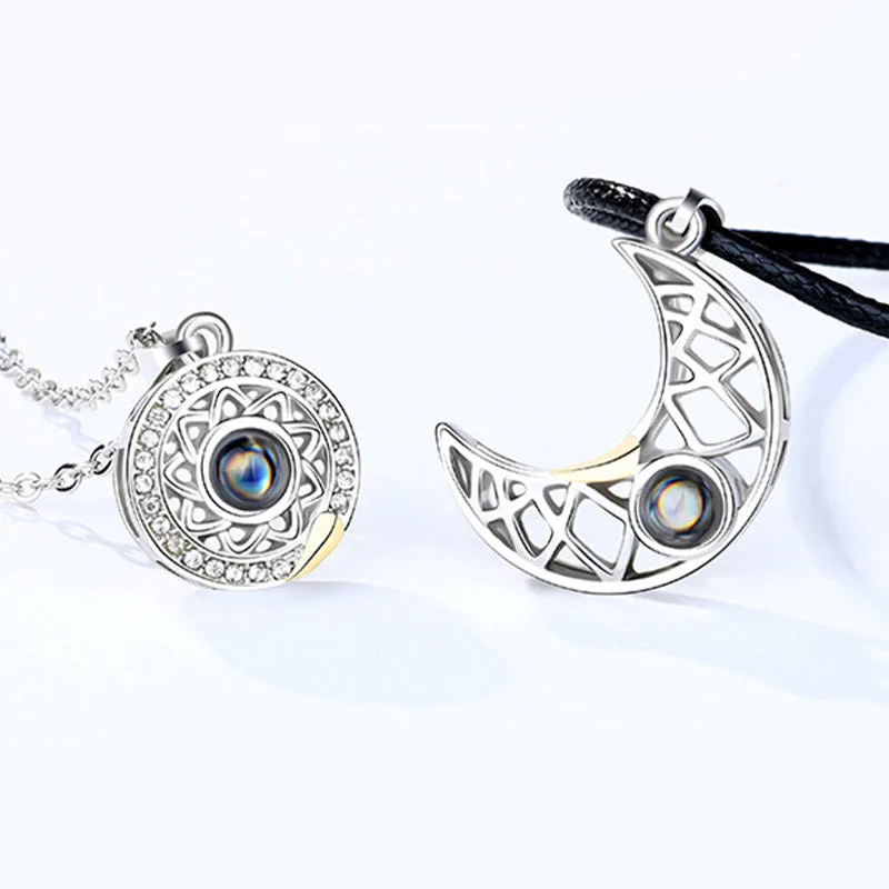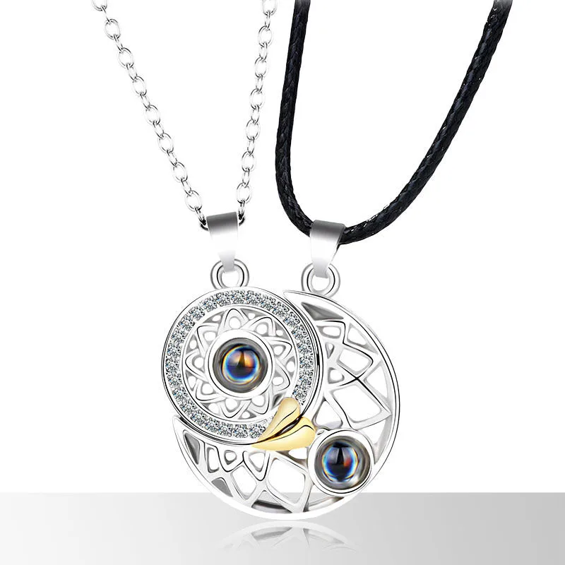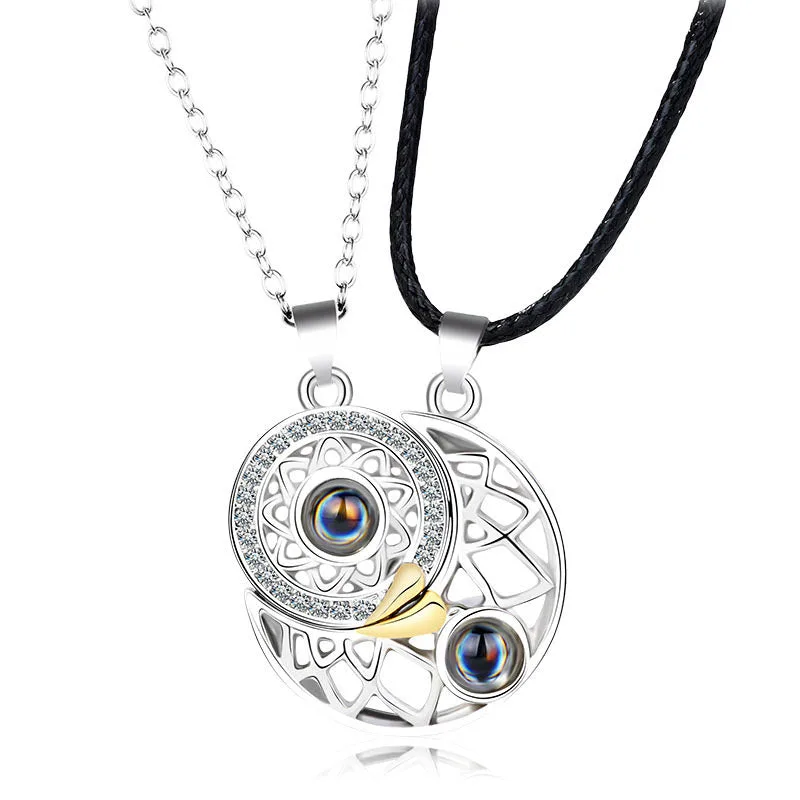 Our Mythstone Magnetic Sun Moon Couple Heart Protection Necklace Pendant is not only stylish but also offers physical and mental benefits. Made of high-quality titanium steel. it strengthens cerebral cortex function. improves work efficiency. and sleep quality. The unique hidden projection design adds a touch of mystery.