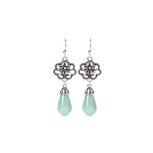 Mythstone Magnolia Flower Jade Water Drop Prosperity Dangle Earrings