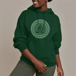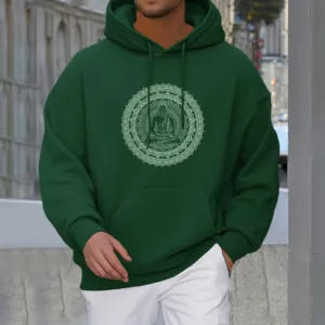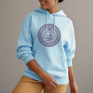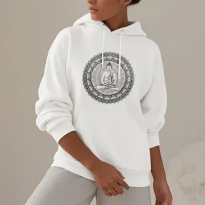 • DESIGN INSPIRATION: This hoodie features a serene Buddha surrounded by a mandala pattern. symbolizing peace. mindfulness. and spiritual enlightenment. The design reflects a journey towards inner tranquility and harmony.