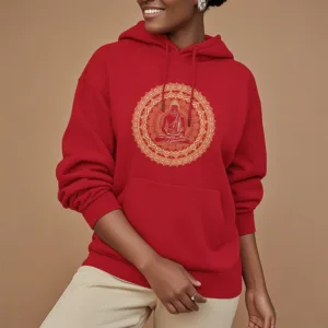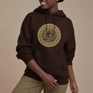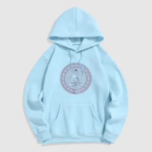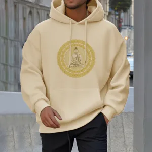 “Blending traditional Buddhist motifs with modern style. this hoodie aims to inspire inner peace and spiritual connection. By honoring the wisdom of Buddhism through accessible. contemporary design. we hope this piece brings joy and spiritual strength to all who wear it.”
