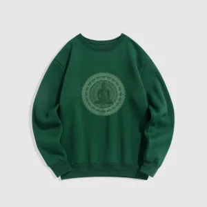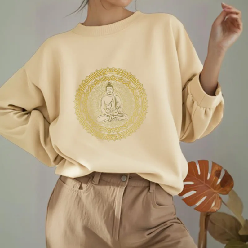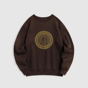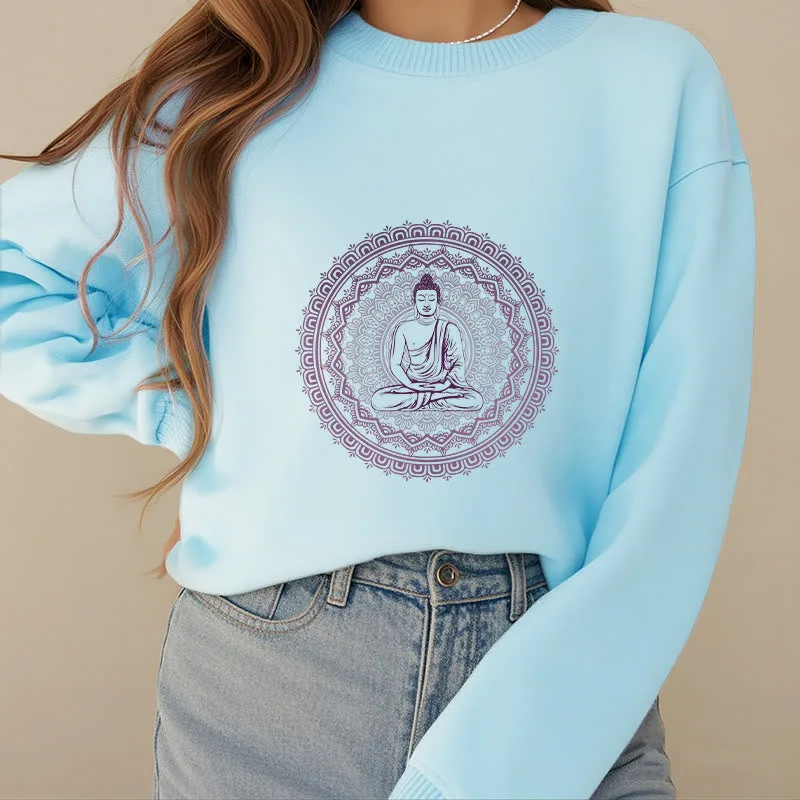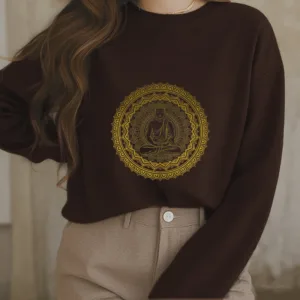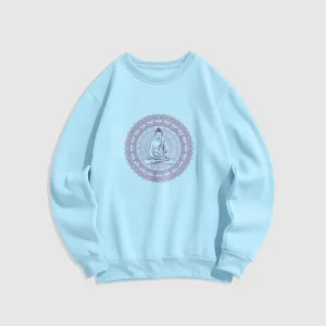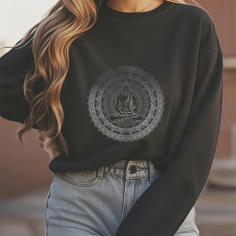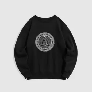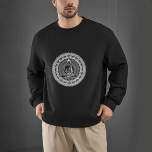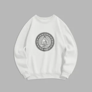 • DESIGN INSPIRATION: This sweatshirt features a serene Buddha surrounded by a mandala pattern. symbolizing peace. mindfulness. and spiritual enlightenment. The design reflects a journey towards inner tranquility and harmony.