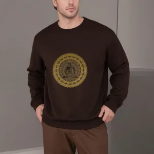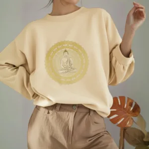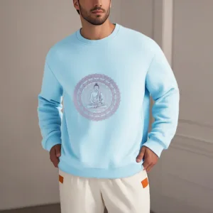 “Blending traditional Buddhist motifs with modern style. this sweatshirt aims to inspire inner peace and spiritual connection. By honoring the wisdom of Buddhism through accessible. contemporary design. we hope this piece brings joy and spiritual strength to all who wear it.”