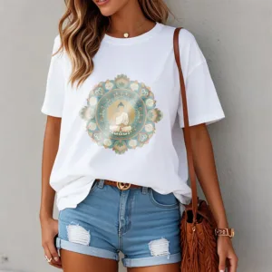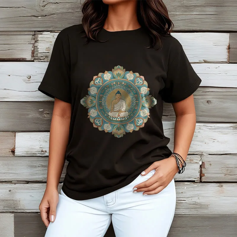 Mandala Flower Buddha Tee blends comfort with spiritual symbolism. Crafted from soft. durable fabric. this T-shirt features a beautiful mandala flower and Buddha design. symbolizing peace and enlightenment. Ideal for casual wear. it serves as a daily reminder of mindfulness and inner harmony. The relaxed fit ensures all-day comfort.