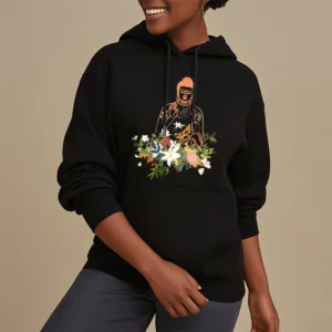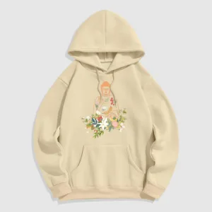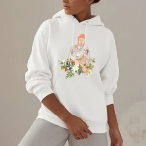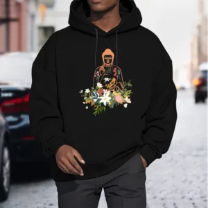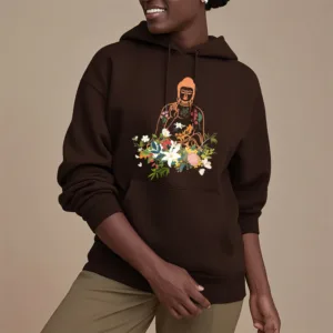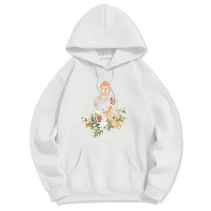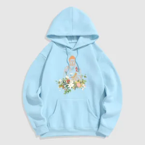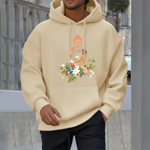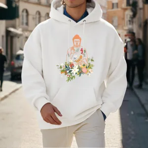 - DESIGN INSPIRATION: This Hoodie features a serene design of a meditating Buddha adorned with blooming flowers. representing tranquility. spiritual growth. and the harmonious connection between nature and mindfulness.