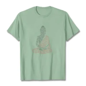 - DESIGN INSPIRATION: The T-shirt featuring the phrase “Let That Shit Go” composed in the shape of Buddha symbolizes the importance of releasing negativity and embracing mindfulness. This design merges humor with a profound message. encouraging wearers to let go of burdens and past grievances. reflecting a modern interpretation of Buddhist teachings on detachment and inner peace.