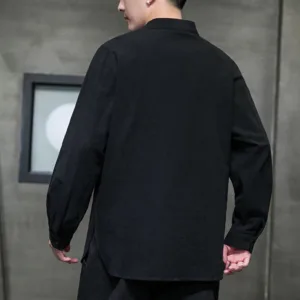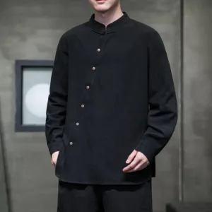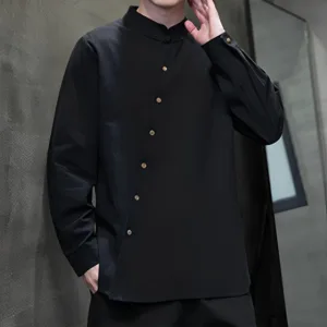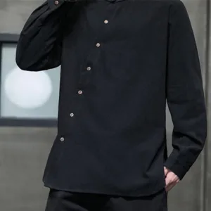 Men’s Stand Collar Linen Shirt features a comfortable stand collar and an innovative diagonal button-down design. Made from a blend of soft cotton and linen. this shirt is breathable and perfect for warm weather. The unique button design not only adds a touch of elegance but also promotes easy wear. This shirt provides comfort and functionality. making it a great choice for any casual occasion.