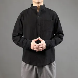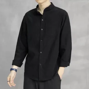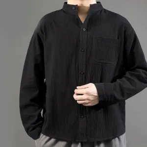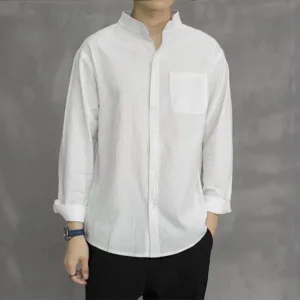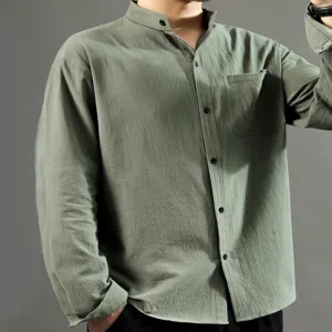 Men’s Long Sleeve Linen Shirt features a comfortable stand collar and a single chest pocket for practical use. Crafted from high-quality linen. this shirt is designed for breathability and ease. making it ideal for warmer weather. The lightweight fabric offers a relaxed fit that promotes comfort and freedom of movement. This versatile piece is perfect for casual gatherings or leisurely activities. combining functionality with a simple yet elegant design.