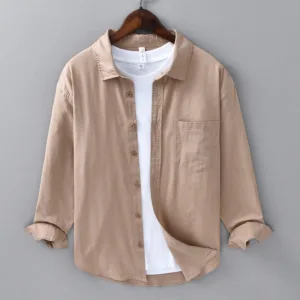 Men’s Pure Color Cotton Shirt features a classic turn-down collar and a practical chest pocket. Made from soft and breathable cotton. this shirt ensures comfort during any activity. The single pocket adds functionality without compromising its sleek design. This versatile piece promotes ease and comfort. making it a perfect choice for those who appreciate simplicity and utility in their wardrobe.