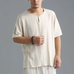 Men’s Solid Color Round Neck shirt combines simplicity with comfort. Crafted from breathable cotton linen. this short sleeve shirt is designed for those who value understated elegance. The round neck offers a classic look. while the lightweight fabric ensures a comfortable wear. Ideal for casual outings and relaxed environments. this shirt embodies a balance of style and ease.