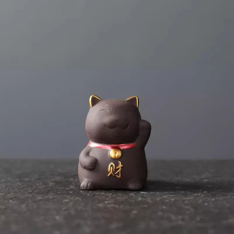 Mini Lucky Cat Wealth Tea Pet figurine features a charming design crafted from purple clay. symbolizing good fortune and prosperity. This adorable tea pet adds a touch of whimsy and cultural significance to your tea ceremonies or home decor. Perfect for enhancing your space. this figurine brings positive energy and a sense of tradition to any setting.