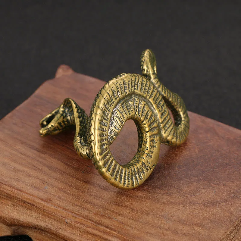 Year of the Snake Bronze Decoration is crafted from solid brass. showcasing a coiled snake with its mouth open. symbolizing wisdom. adaptability. and transformation. This detailed sculpture is a meaningful addition to any space. representing resilience and renewal. The high-quality brass material ensures durability. while its compact size makes it suitable for home or office settings.