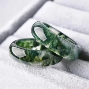 The Moss Agate Healing Balance Ring is a piece of jewelry made from moss agate. a stone believed to bring balance and stability to one’s life. The ring is designed to promote healing and harmony by balancing emotions. improving self-esteem. and reducing stress. Its unique patterns and colors make it a stylish and meaningful accessory.