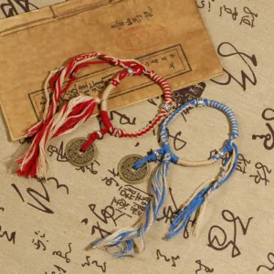 Discover the enigmatic tradition of Mountain Ghosts Spend Money with our Handmade Braided Bracelet. Infused with the symbolic energies of warding off evil spirits. attracting wealth. and resolving troubles. this bracelet showcases the essence of mountain ghosts. With intricate craftsmanship and meaningful symbolism. this accessory is a tangible reminder of protection and prosperity. Explore the rich meanings behind the intricate patterns and mantras while adorning yourself with a piece of history and mysticism. Note the taboos to ensure the enduring spirituality of this remarkable piece.
