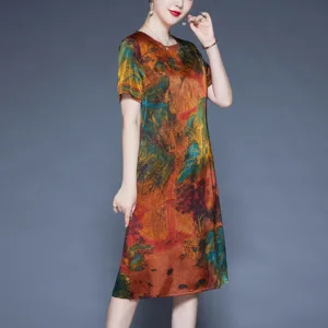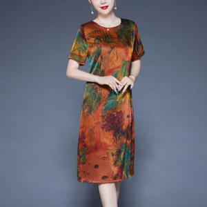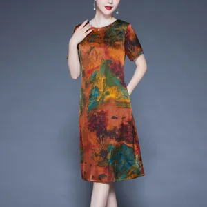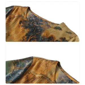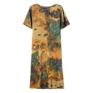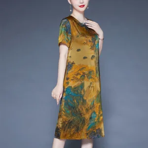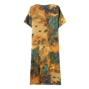 Mountains Trees Pattern dress features a serene landscape design with short sleeves and midi length. complete with pockets. This dress combines natural beauty and practicality. offering a comfortable fit with its breathable fabric. The tranquil mountains and trees pattern adds a unique touch. Ideal for those seeking a stylish and functional wardrobe addition.