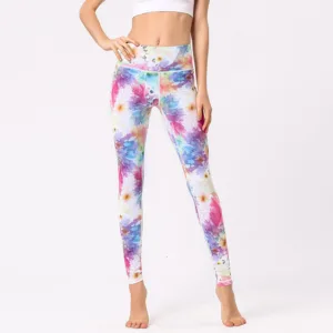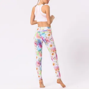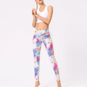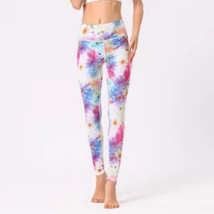 Flowers Print High Waist leggings offer both functionality and a serene aesthetic. perfect for sports. exercise. and fitness enthusiasts. Designed with comfort in mind. these leggings ensure flexibility and support in any yoga or workout session. The multicolored print draws inspiration from the calming presence of nature. aiming to promote a balanced and mindful fitness experience.