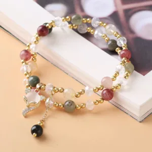Unlock the power of Rutilated Quartz with the Mythstone Multicolored Rutilated Quartz Fox Bracelet. This exquisite double-wrap bracelet features Rutilated Quartz. known for its auspiciousness. courage. and wealth-enhancing properties. Experience spiritual growth. protection. and a renewed sense of positivity as you adorn yourself with this beautiful piece.