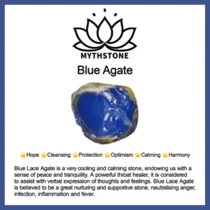 Blue Lace Agate is a very cooling and calming stone. endowing us with a sense of peace and tranquility. A powerful throat healer. it is considered to assist with the verbal expression of thoughts and feelings. Blue Lace Agate is believed to be a great nurturing and supportive stone. neutralizing anger. infection. inflammation. and fever.
