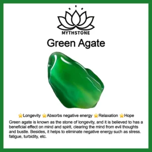 Green Agate has the meaning and properties of giving courage to the owner. It has been loved as ‘a gemstone of power’ from the old days. It also has been told that it was embedded in the armor for the soldiers. Green Agate would give you the energy to win a battle. These days. it is worn as a gemstone that leads business to victory. It is useful when you want to have a good result at work or when you want the power to go forward.