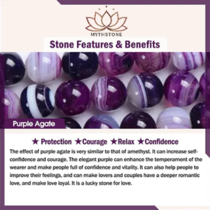 The effect of purple agate is very similar to that of amethyst. It can increase self-confidence and courage. The elegant purple can enhance the temperament of the wearer and make people full of confidence and vitality. It can also help people to improve their feelings and can make lovers and couples have a deeper romantic love. and make love loyal. It is a lucky stone for love.