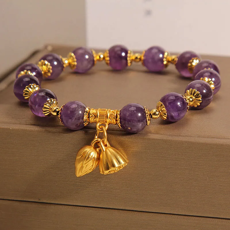 A gorgeous purple gemstone. the amethyst is said to bring strength. courage. and peace. These benefits can help promote healing. It’s a soothing stone with peaceful properties. with a quiet energy that should also help release creativity. Since the stone has such tranquil qualities. it’s a great gift for anyone suffering from anxiety. mood disorders. and addictions. It is said to promote spiritual and physical health.