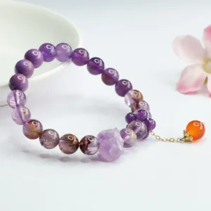 Purple Phantom Gemstone bracelet is crafted with unique phantom amethysts. known for fostering spiritual awareness and personal insight. Each gemstone bead on this bracelet is thoughtfully selected to support spiritual awakening and psychic intuition. Ideal for those seeking a deeper connection with their spiritual self. this bracelet acts as a daily reminder of one’s inner growth.