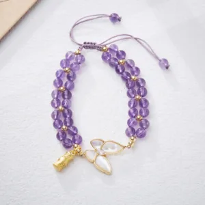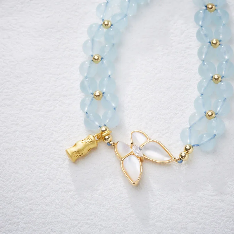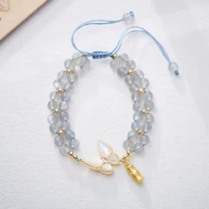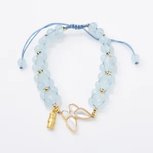 Mythstone Natural Aquamarine Amethyst Moonstone Butterfly Bamboo Healing Bracelet