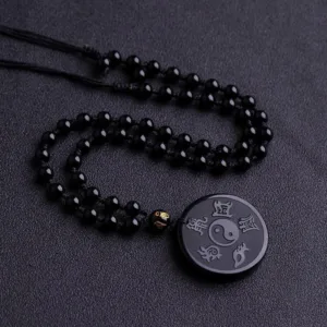 Be the first to review “Mythstone Natural Black Obsidian Taoism Five Sacred Mountains Nine-Character Mantra Carved Strength Yin Yang Necklace Pendant Key Chain”
