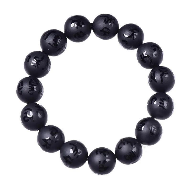 Mythstone Natural Black Onyx Om Mani Padme Hum Carved Protection Bracelet