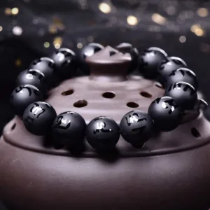 Be the first to review “Mythstone Natural Black Onyx Om Mani Padme Hum Carved Protection Bracelet”
