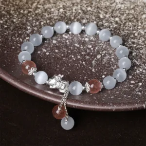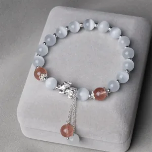 - Material: Moonstone. Strawberry Quartz. Cat’s Eye
