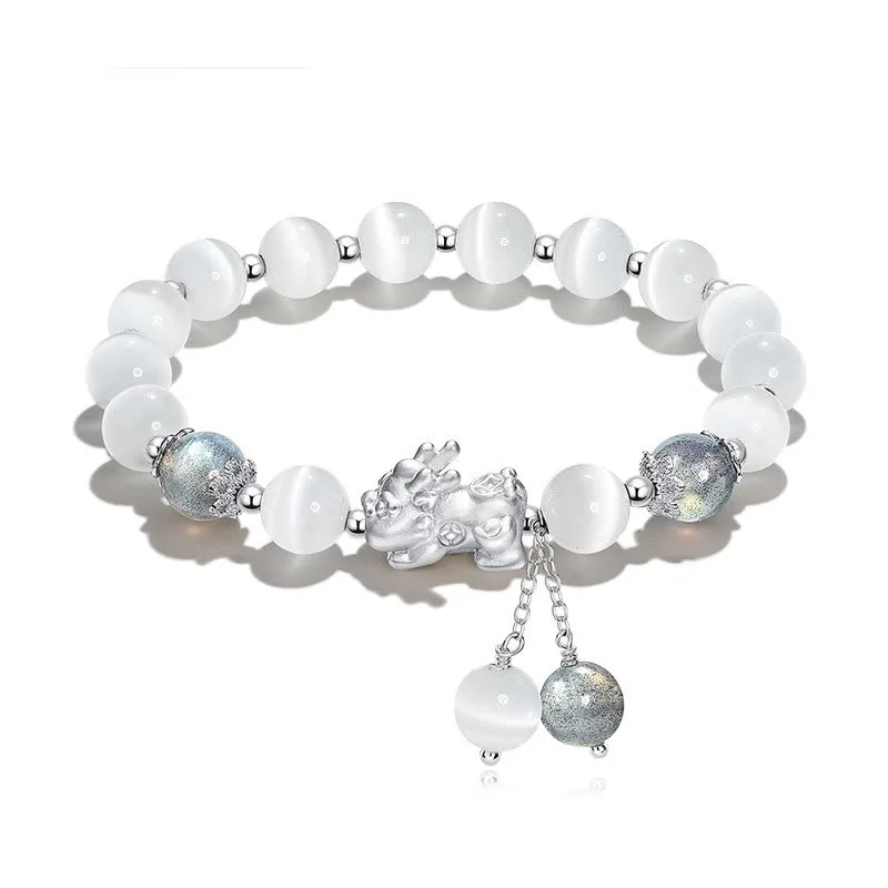 The Pixiu provides a minimum of six blessings as follows:Conducts good luck and fortune. Generate good Feng Shui or earth luck. Enhances wealth and riches. Protects individuals and building. Protects against evil forces. obstacles. and hardship. Brings unexpected windfall luck. One of the popular ways to retain a Pixiu is to wear it on a bracelet.