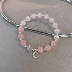 Discover peace and self-acceptance with our Mythstone Cat’s Eye Pink Crystal Moon Love Charm Bracelet. Crafted with Pink Crystal for soothing warmth and love. it promotes self-worth and positive energy. Embrace the handmade. natural charm of this bracelet for a meaningful journey.