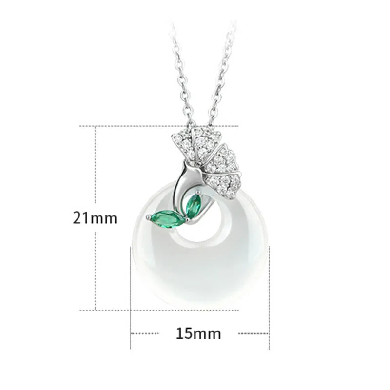 Chalcedony Ginkgo Leaf Pendant Necklace is crafted from natural chalcedony. featuring a ginkgo leaf and a peace buckle design. The ginkgo symbolizes longevity and harmony. while the peace buckle represents tranquility. This necklace is a symbol of balance and serenity. perfect for those seeking inner peace and spiritual grounding through meaningful design and high-quality materials.