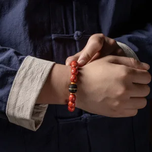 In Buddhist culture. cinnabar is often made into prayer beads and rosary beads. It is used when chanting Buddhist scriptures. It can calm people’s minds. calm their minds. concentrate their minds. and improve their wisdom. It is an essential mascot for those who worship Buddha.