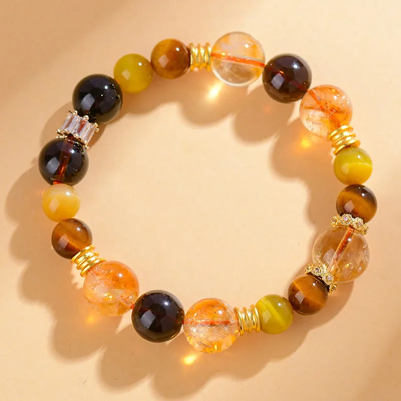 - Material: Citrine. Smoky Quartz. Tiger Eye. Alloy