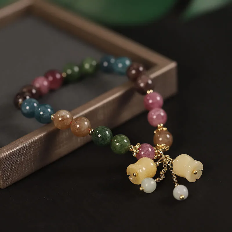 Mythstone Natural Colorful Tourmaline Flower Bead Love Bracelet