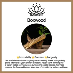Boxwood is an Evergreen. Dense Roots Make Boxwood a Symbol for Grounding. Boxwood represents a strong connection to the earth. This symbolism comes from the plants’ impressive roots. Tightly Packed Foliage Symbolizes Abundance. Tough. Leathery Leaves Symbolize Strength and Abundance. Boxwood Blooms in the Spring. Symbolizing New Life and Rebirth.