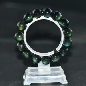 The Natural Green Eye Obsidian Wealth Bracelet will bless you with its ability to influence your ethereal plane and get you closer to finding your eternal bliss. All obsidian stones have a significant impact on the root chakra. but the effect that the green obsidian has is unmatched. After wearing this bracelet. your sense of being grounded and stable will be noticeable to anyone who interacts with you.