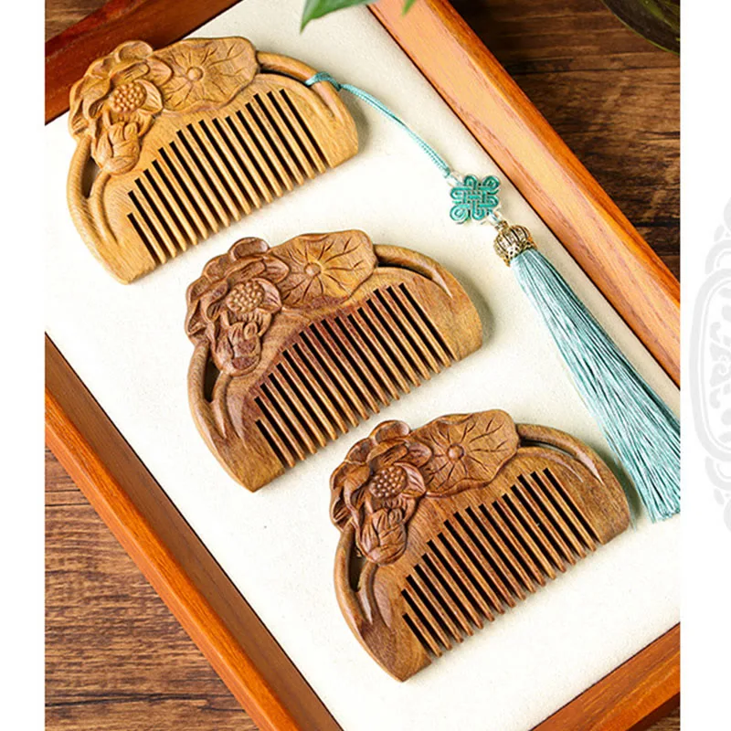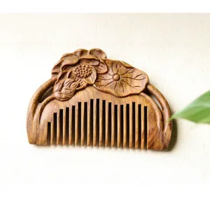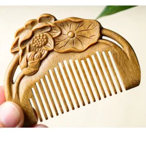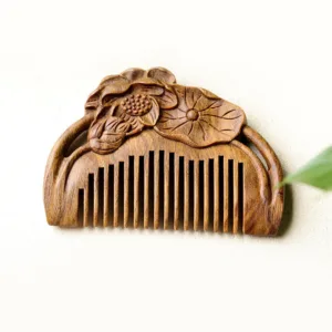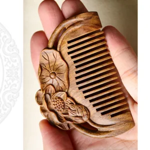 Elevate your self-care routine with the Mythstone Natural Green Sandalwood Lotus Flower Leaf Engraved Soothing Comb. Crafted from the tranquil green sandalwood. known for its calming properties. this comb is adorned with delicate lotus flower leaf engravings. Experience peace and attract positive energy as you gently comb through your hair. creating a soothing and mindful ritual that resonates with the essence of green sandalwood’s serene nature.