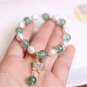 Be the first to review “Mythstone Natural Green Strawberry Quartz Pearl Flower Charm Love Bracelet”