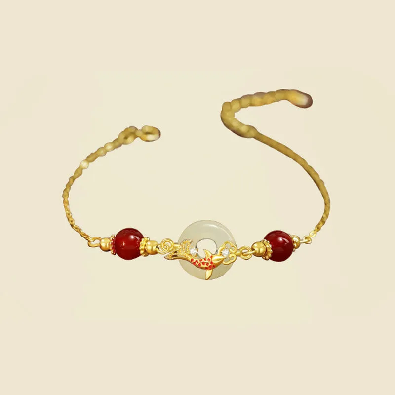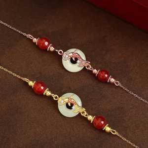 - Material: Hetian Jade. Red Agate. 925 Sterling Silver. Cubic Zirconia