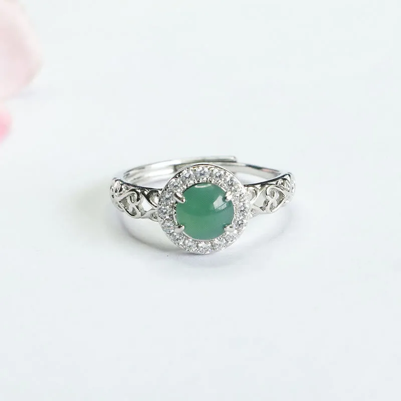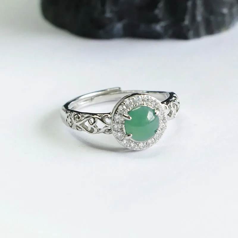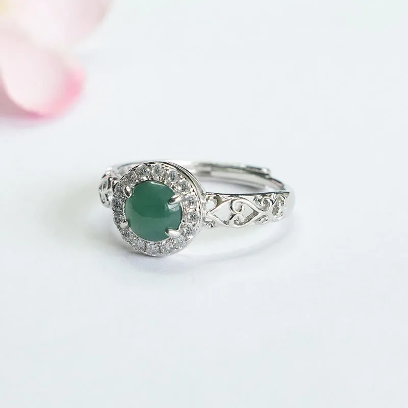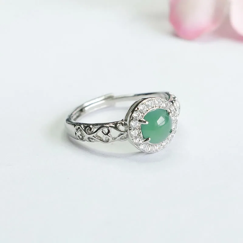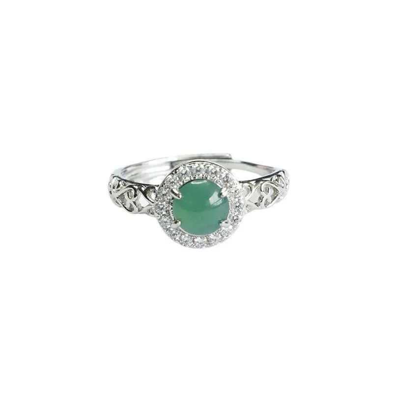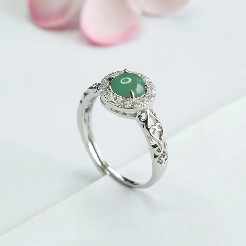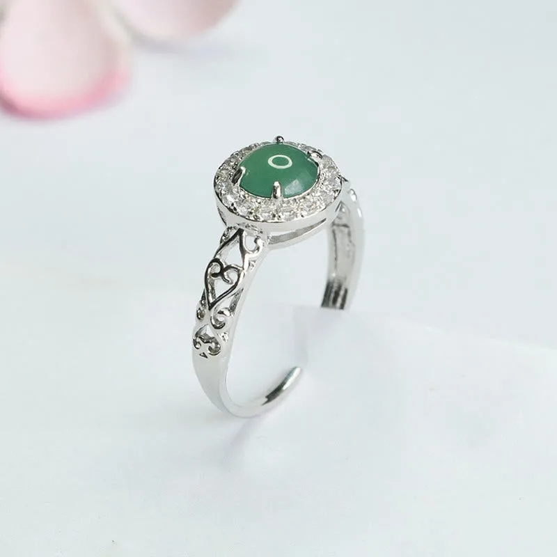 Mythstone Natural Hetian Jade Egg Ruyi Stick Pattern Luck Ring