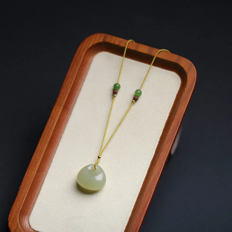 Embrace prosperity and natural beauty with our Mythstone Natural Hetian Jade Small Bag Pattern Prosperity String Necklace Pendant. Crafted with genuine Hetian jade. this pendant carries the essence of prosperity and positive energy. Adorn yourself with this meaningful piece to enhance your aura and attract abundance while appreciating the elegance of the design.