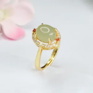 Be the first to review “Mythstone Natural Hetian Jade Zirconia Egg Copper Open Luck Ring”
