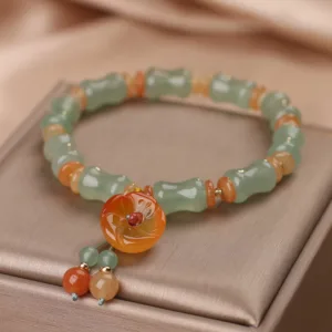 Discover the synergistic energies of luck and prosperity with the Mythstone Natural Jade Bamboo Flower Pattern Luck Bracelet. Combining the symbolism of bamboo’s strength and growth with the prosperity and abundance attributed to jade. this bracelet embodies a harmonious blend of positive energies and blessings.