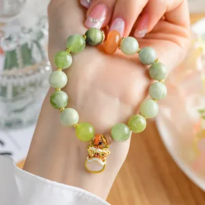 Mythstone Natural Jade Dancing Lion Charm Prosperity Luck Bracelet