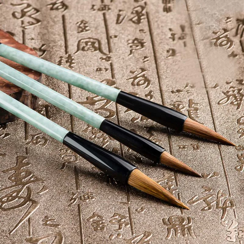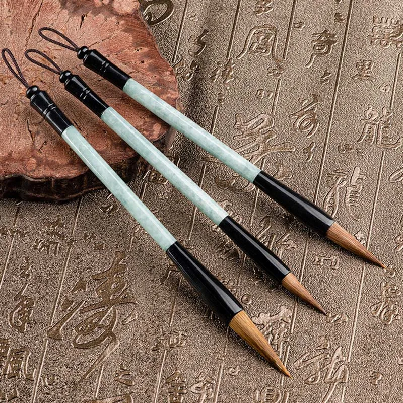 Mythstone Natural Jade Luck Chinese Calligraphy Brush Pen Chinese Writing Brush With Gift Box