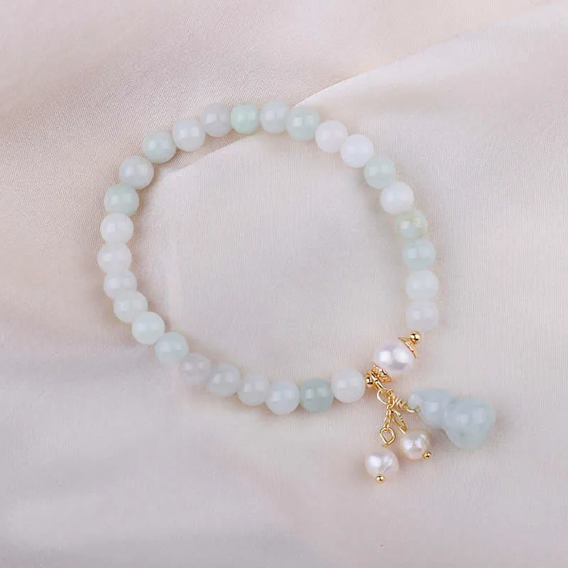 - Material: Jade. Pearl. Copper Plated Gold