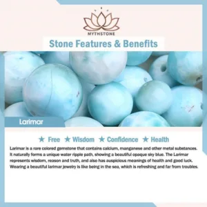 Larimar is a rare colored gemstone that contains calcium. manganese and other metal substance. It naturally forms a unique water ripple path. showing a beautiful opaque sky blue. The Larimar represents wisdom. reason and truth. and also has auspicious meanings of health and good luck. Wearing a beautiful larimar jewelry is like being in the sea. which is refreshing and far from troubles.